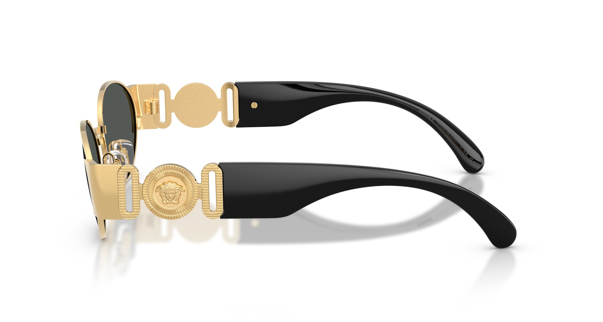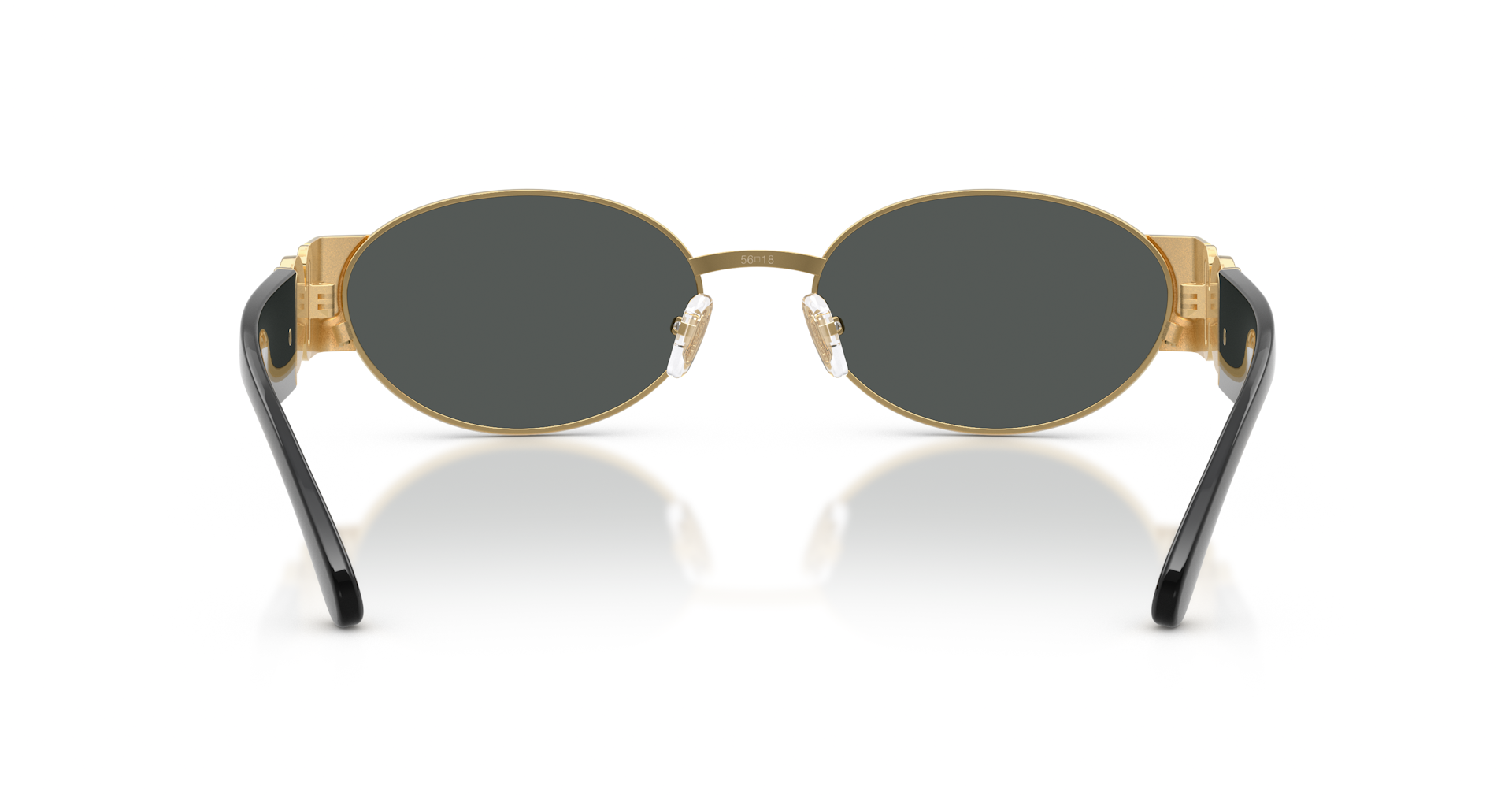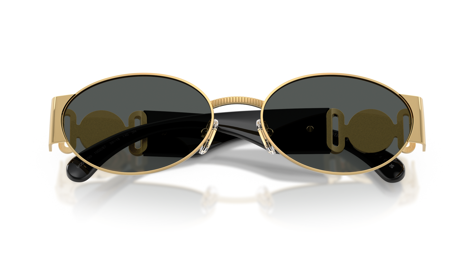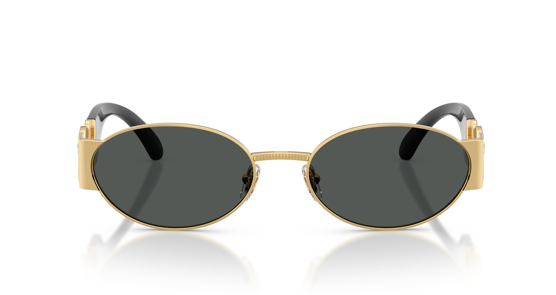 Μεταλλικός αντρικός χρυσός-μαύρος γυαλιστερός σκελετός σε σχήμα οβάλ και ρετρό στιλ με σκούρους γκρι UV400 και ελαφρύ ασημί καθρέπτη φακούς.