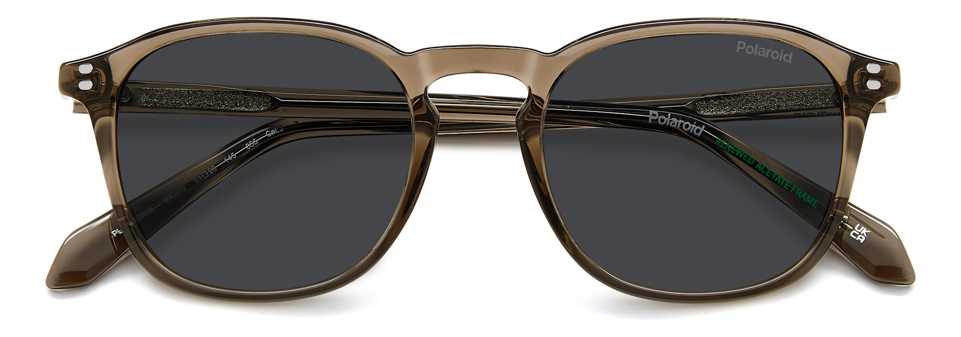 Πλαστικός tr90 unisex σκούρος καφέ ημιδιάφανος, οικολογικός, και ελαφρύς σκελετός σε σχήμα τετράγωνο και κλασικό στιλ με σκούρους γκρι πολωτικούς φακούς.