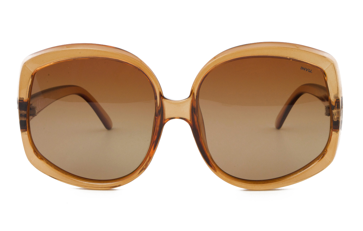 Πλαστικός tr90 γυναικείος καφέ ημιδιάφανος, γυαλιστερός και ελαφρύς σκελετός σε oversized τετράγωνο σχήμα και ρετρό στιλ με δίχρωμους καφέ πολωτικούς φακούς.