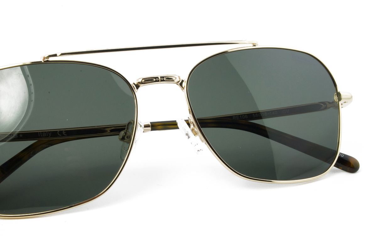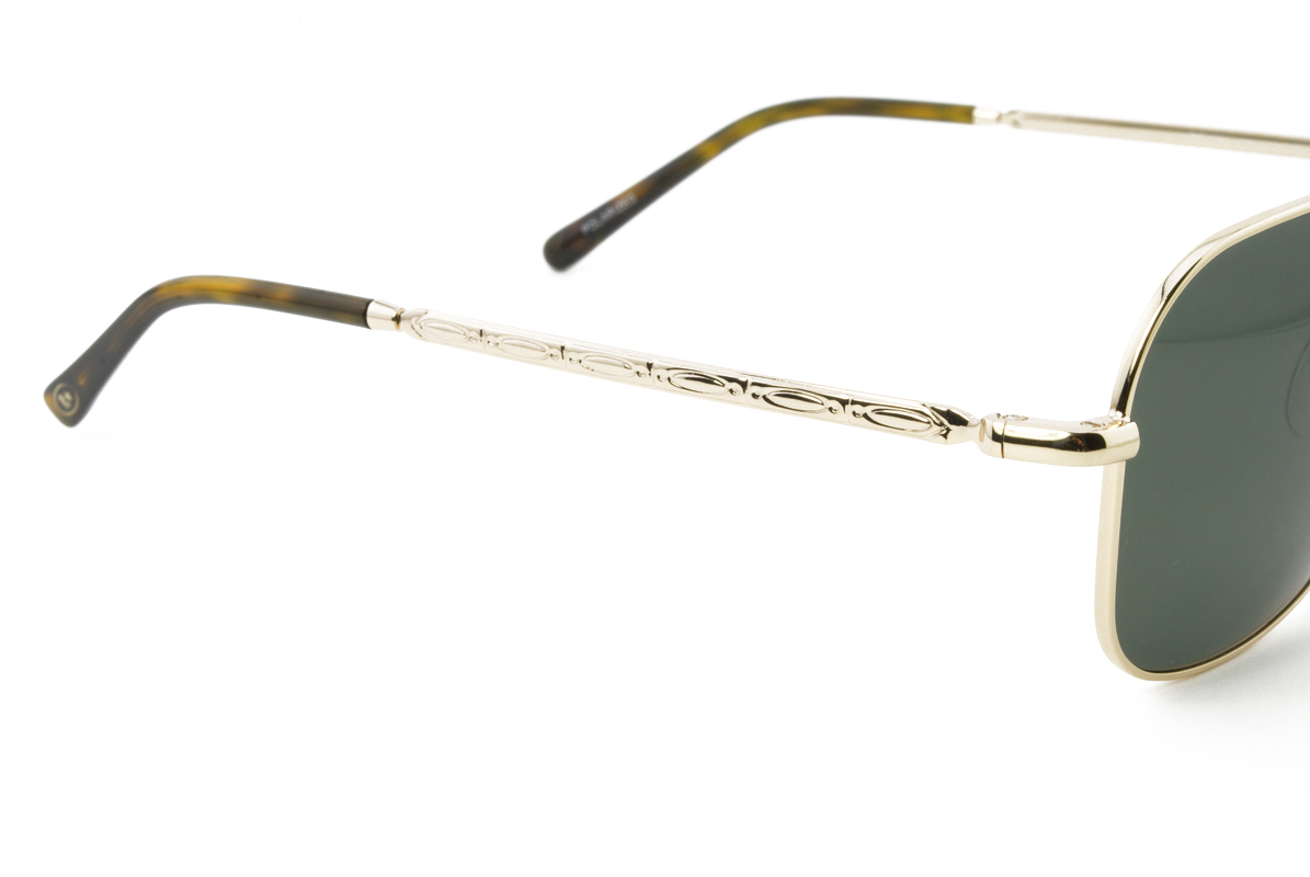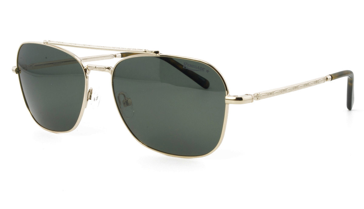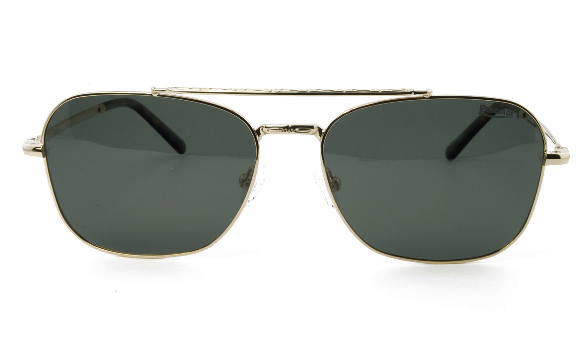 Μεταλλικός unisex χρυσός γυαλιστερός και ελαφρύς σκελετός σε σχήμα τετράγωνο aviator και κλασικό στιλ με σκούρους πράσινους πολωτικούς και ελαφρύ ασημί καθρέπτη φακούς.