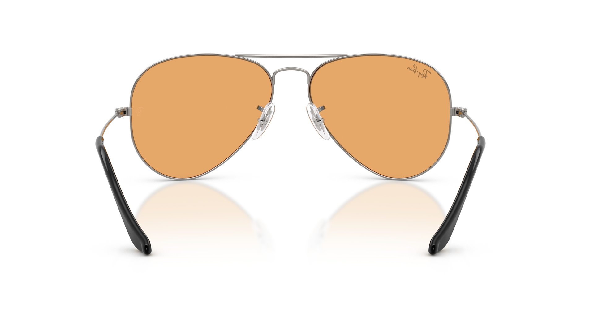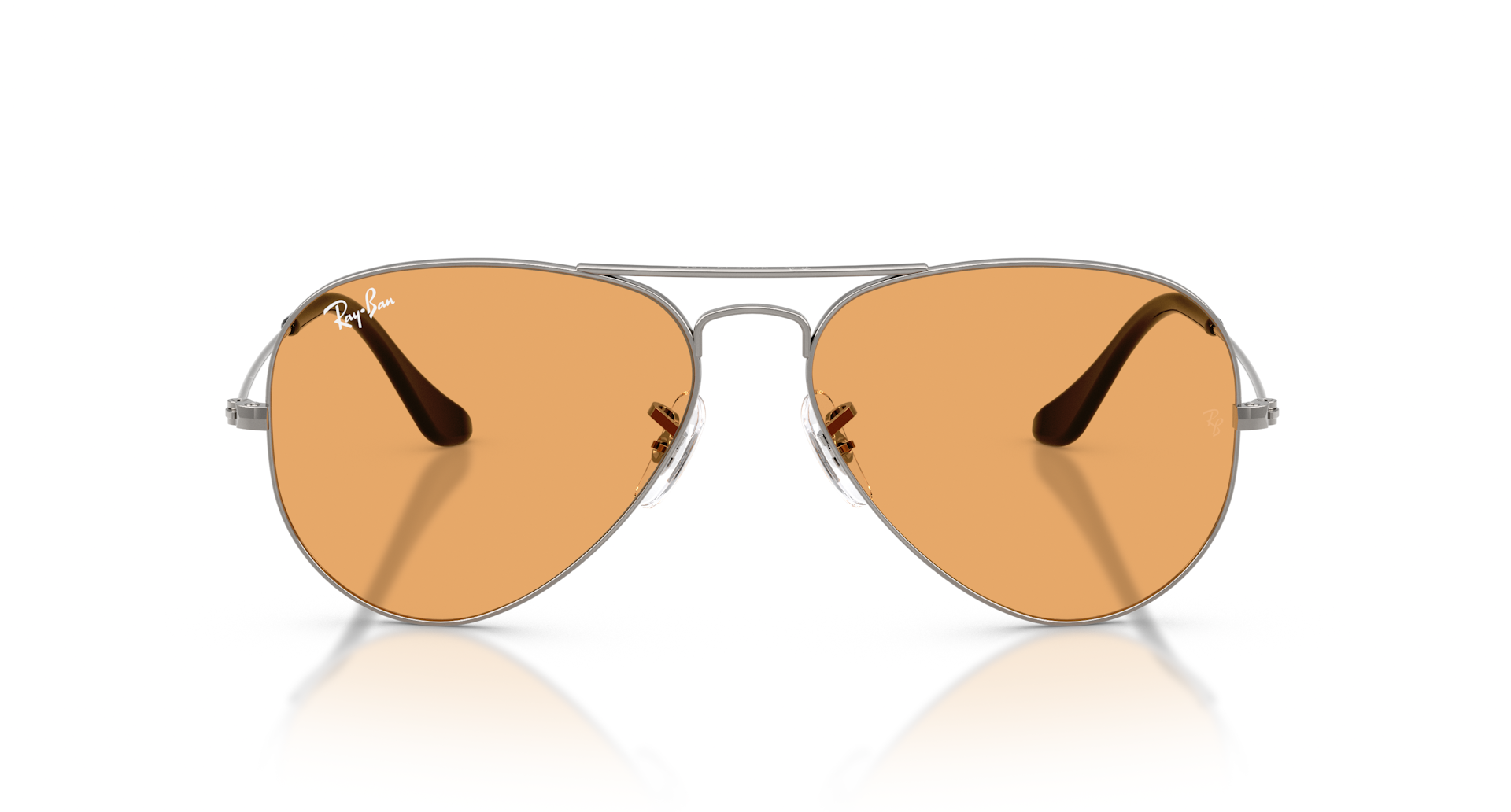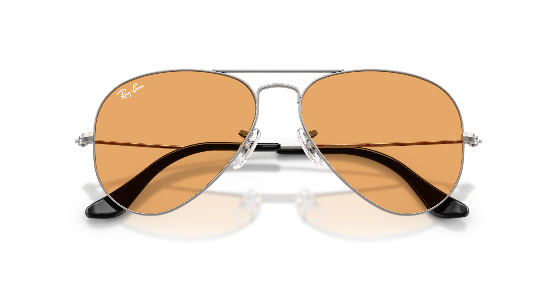 Μεταλλικός unisex ασημί γυαλιστερός σκελετός σε aviator σχήμα και κλασικό στιλ με σκούρους πορτοκαλί UV400 κρυστάλλινους και ανοιχτόχρωμους φακούς.