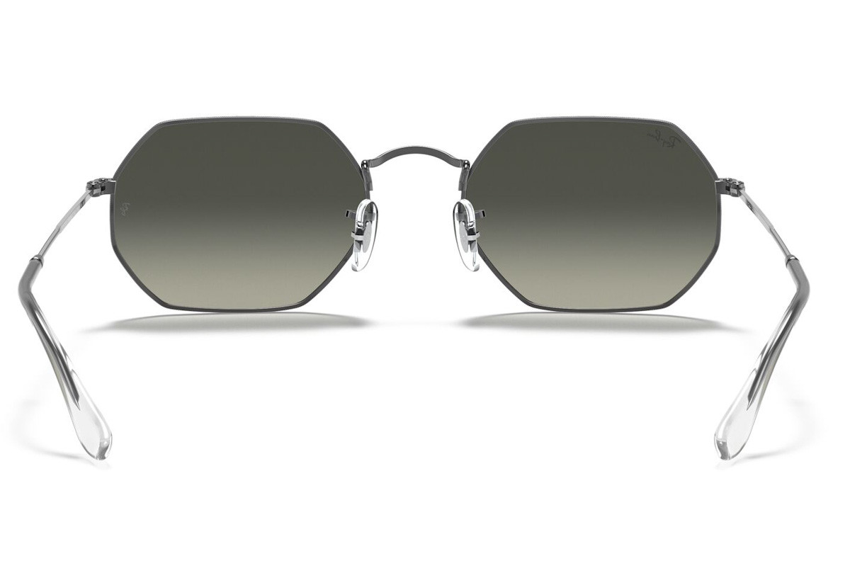 Μεταλλικός unisex σκούρος γκρι γυαλιστερός σκελετός σε πολυγωνικό σχήμα και μοντέρνο στιλ με δίχρωμους γκρι UV400 κρυστάλλινους και ελαφρύ ασημί φακούς .