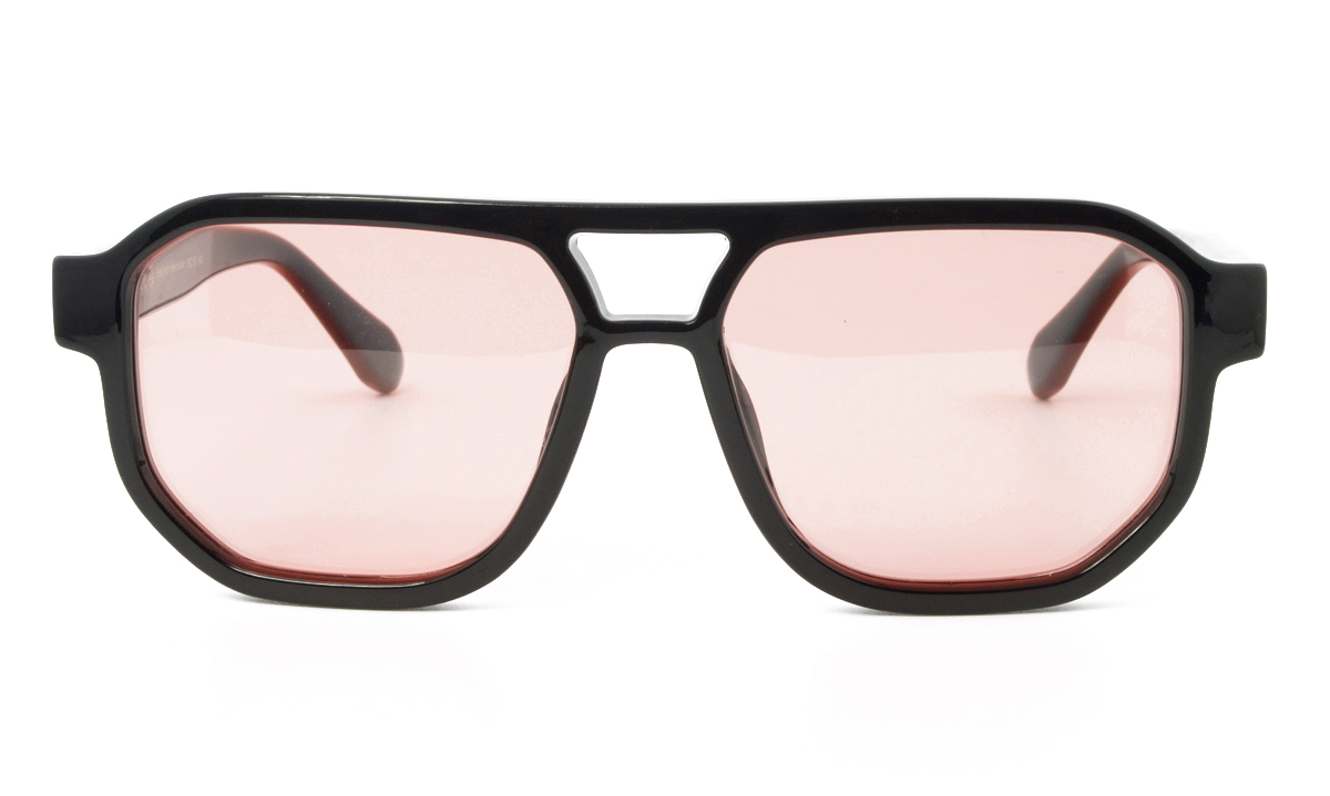 Κοκάλινος unisex μαύρος γυαλιστερός και ελαφρύς σκελετός σε πολυγωνικό σχήμα και μοντέρνο στιλ με ροζ πολωτικούς ανοιχτόχρωμους φακούς.