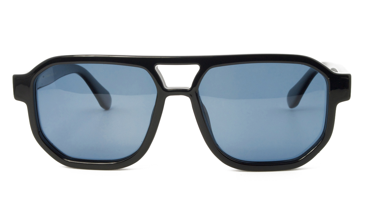 Κοκάλινος unisex μαύρος γυαλιστερός και ελαφρύς σκελετός σε πολυγωνικό σχήμα και μοντέρνο στιλ με μπλε πολωτικούς ανοιχτόχρωμους φακούς.