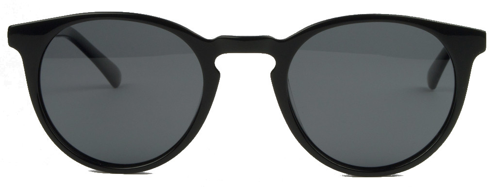 Κοκάλινος unisex μαύρος γυαλιστερός και ελαφρύς σκελετός σε στρογγυλό σχήμα και ρετρό στιλ με σκούρους γκρι UV400 και ελαφρύ ασημί καθρέπτη φακούς.