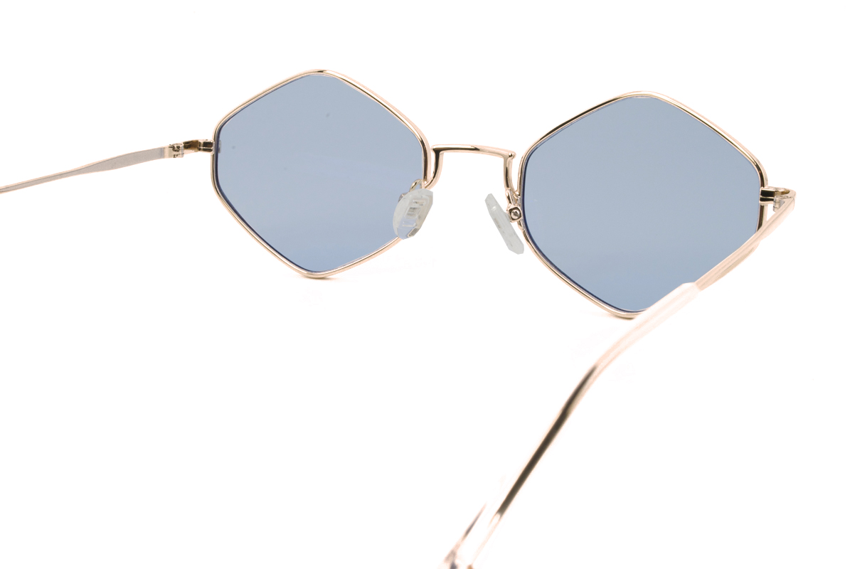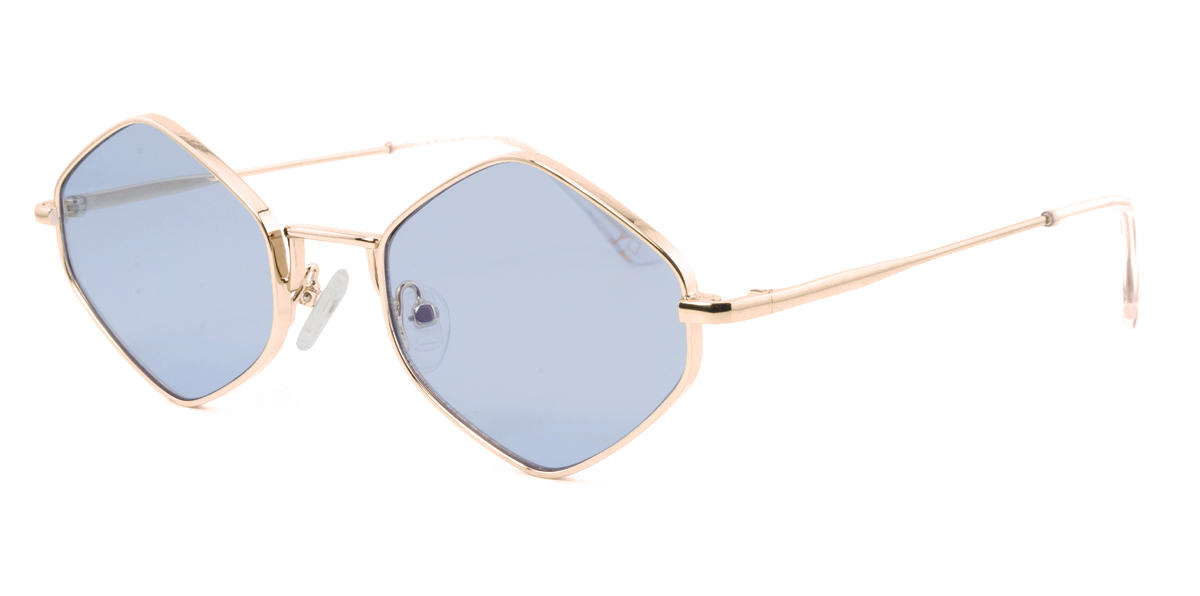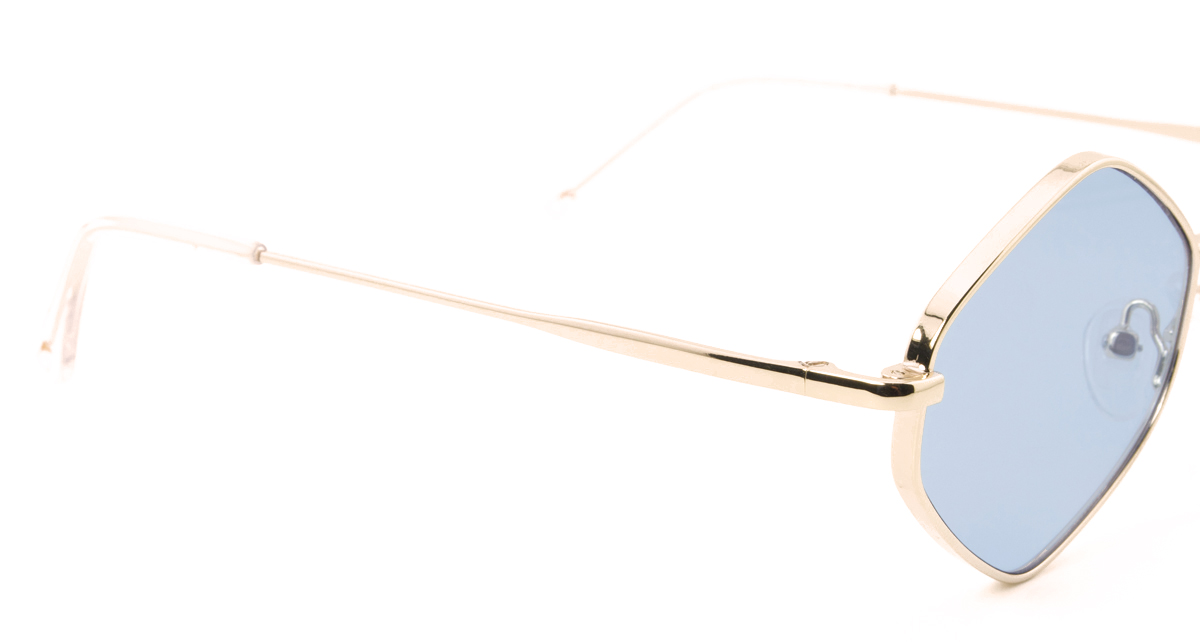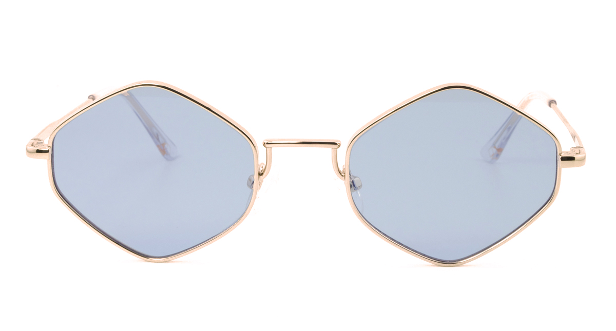 Μεταλλικός unisex ασημί γυαλιστερός σκελετός σε σχήμα τριγωνικό πολυγωνικό και φουτουριστικό στιλ με μπλε UV400 ανοιχτόχρωμους φακούς.