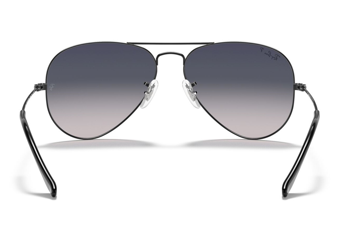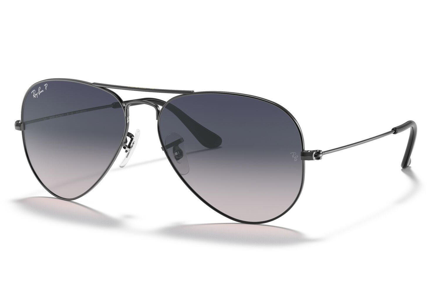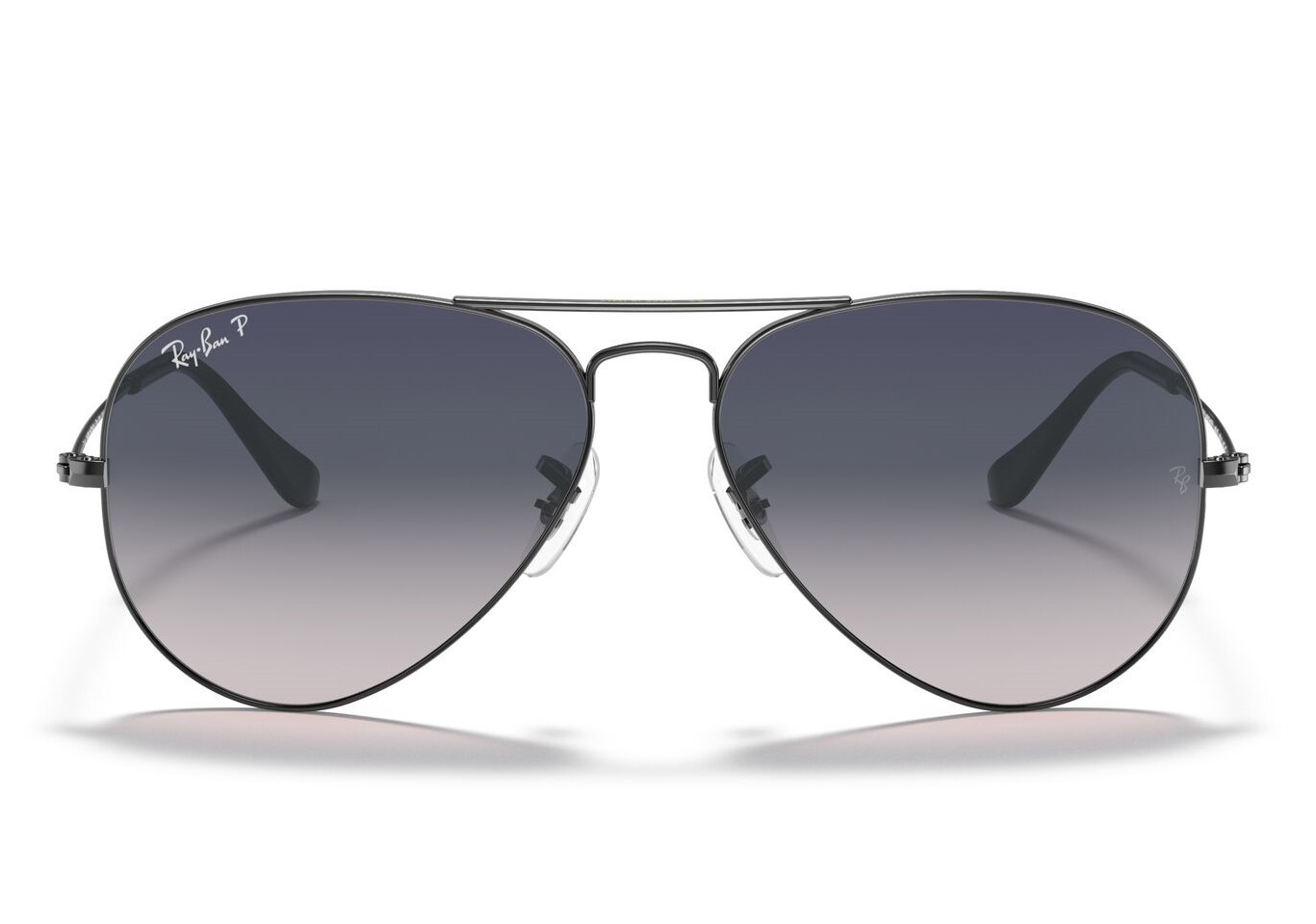 Μεταλλικός unisex σκούρος γκρι γυαλιστερός σκελετός σε aviator σχήμα και κλασικό στιλ με δίχρωμους κρυστάλλινους μπλε πολωτικούς και ελαφρύ ασημί καθρέπτη φακούς.