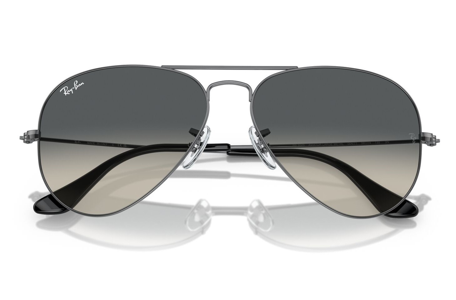 Μεταλλικός unisex σκούρος γκρι γυαλιστερός σκελετός σε aviator σχήμα και κλασικό στιλ με δίχρωμους γκρι UV400 κρυστάλλινους φακούς.