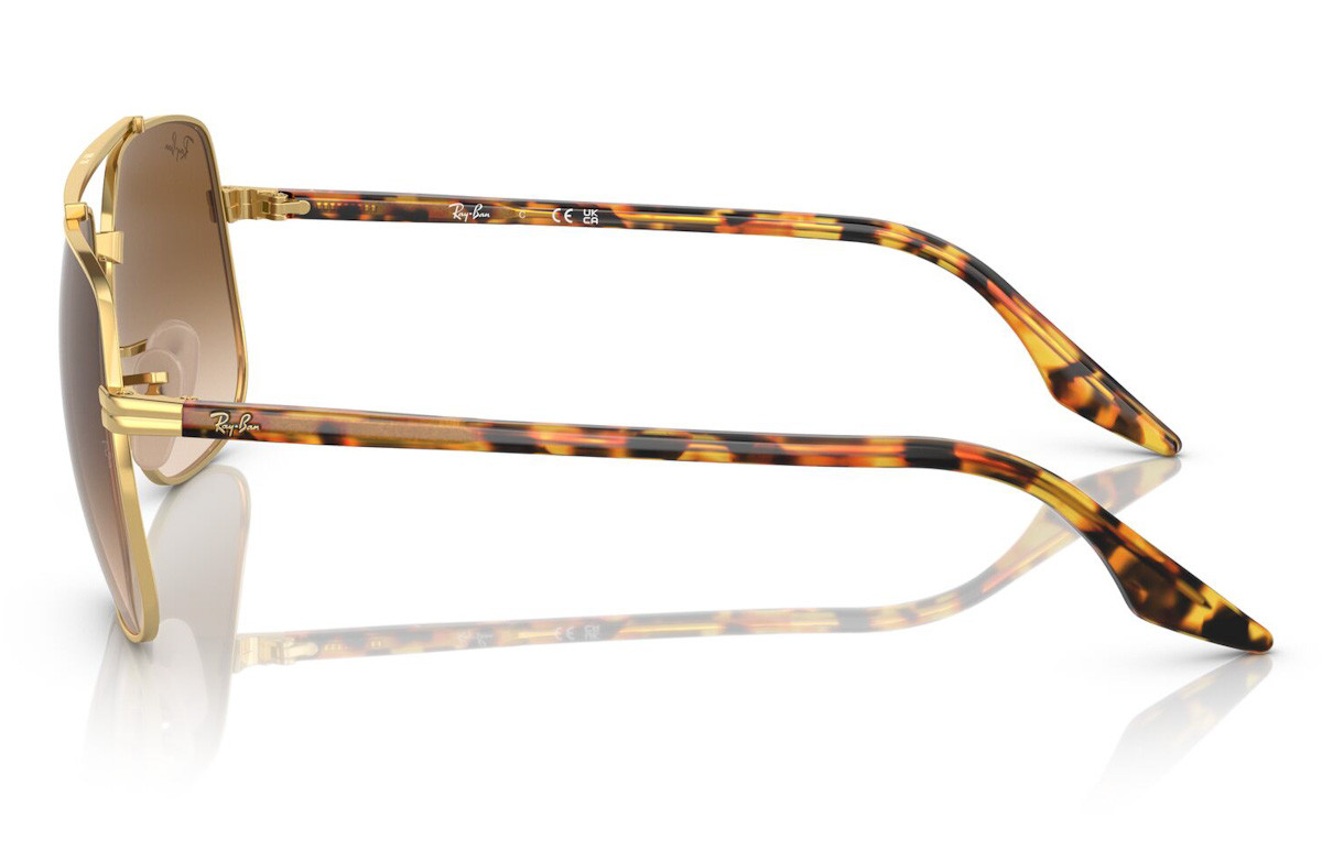 Μεταλλικός unisex χρυσός γυαλιστερός σκελετός με κοκάλινους καφέ ταρταρούγα βραχίονες σε τετράγωνο aviator σχήμα και κλασικό στιλ με δίχρωμους καφέ UV400 κρυστάλλινους φακούς.