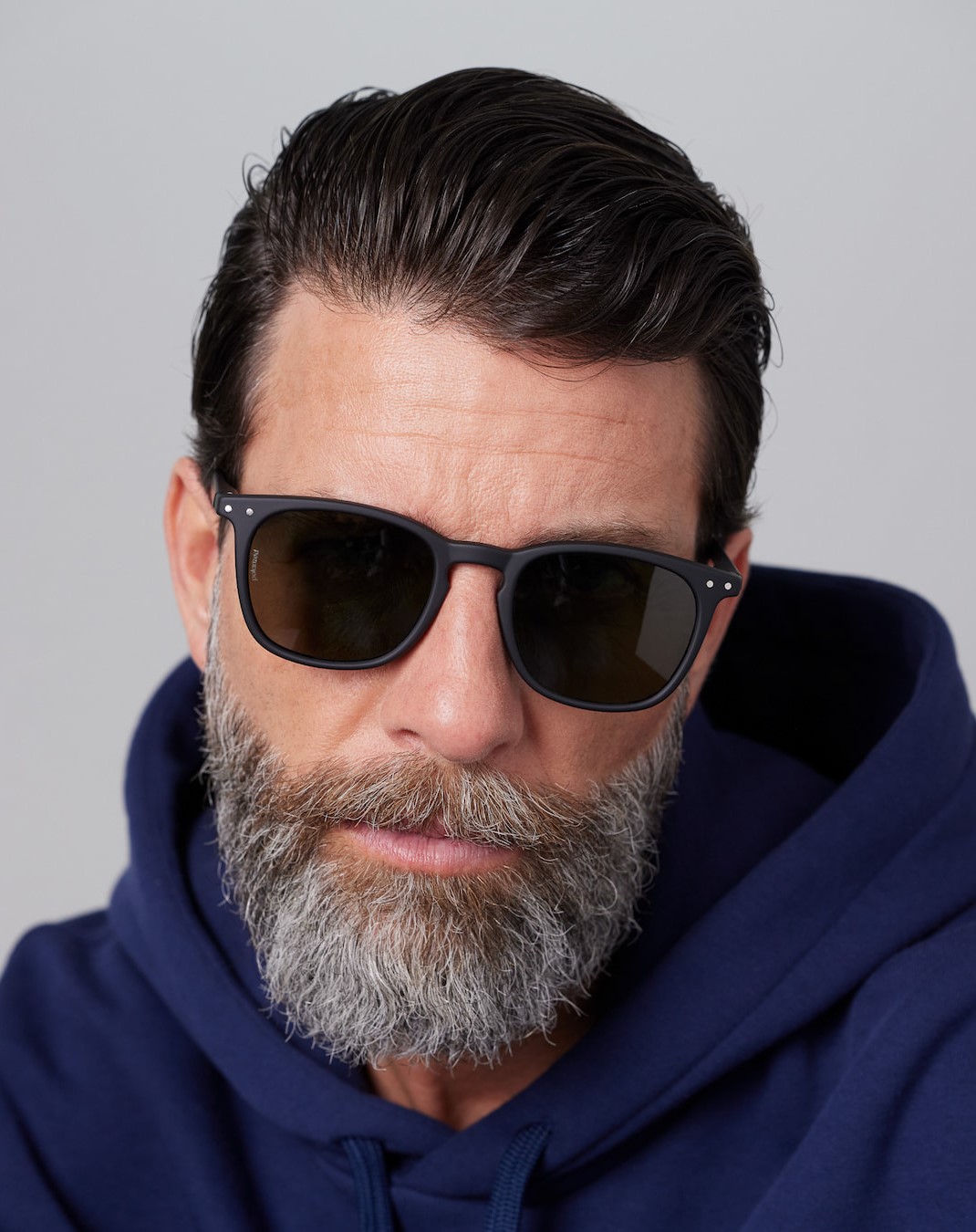 Κοκάλινος unisex ματ μαύρος ελαφρύς σκελετός σε τετράγωνο σχήμα και κλασικό στιλ με σκούρους πράσινους πολωτικούς Cat.3 φακούς.