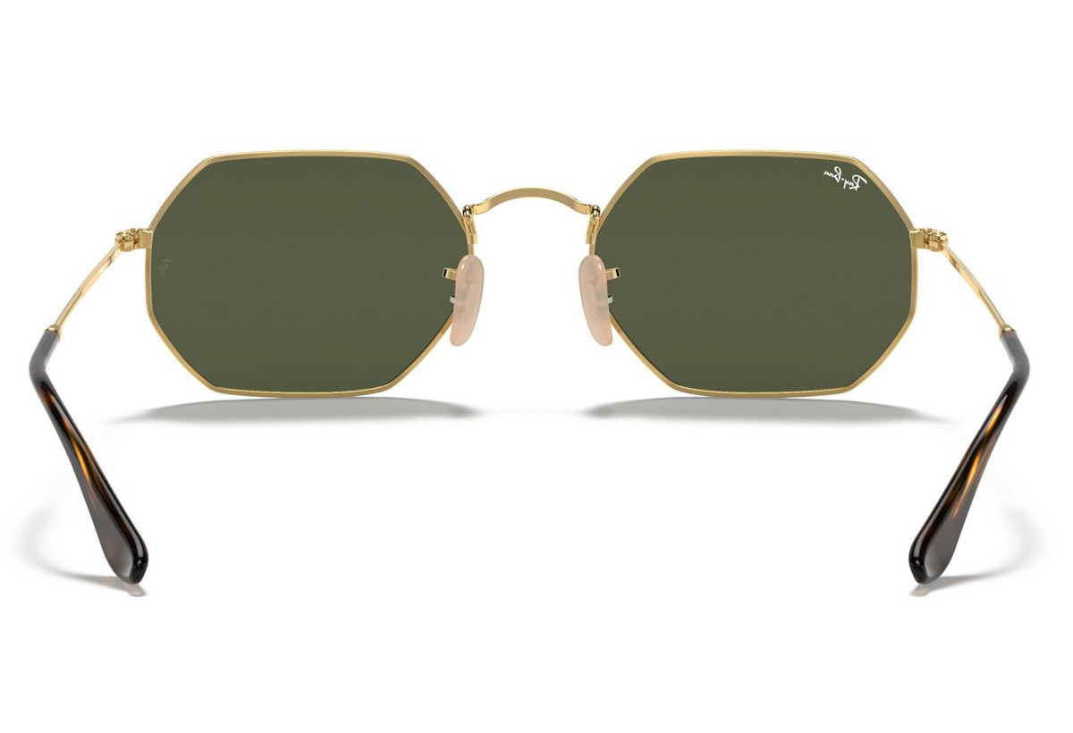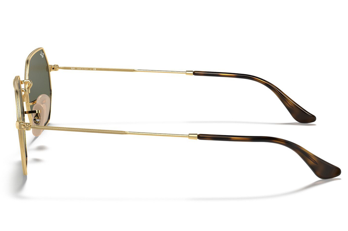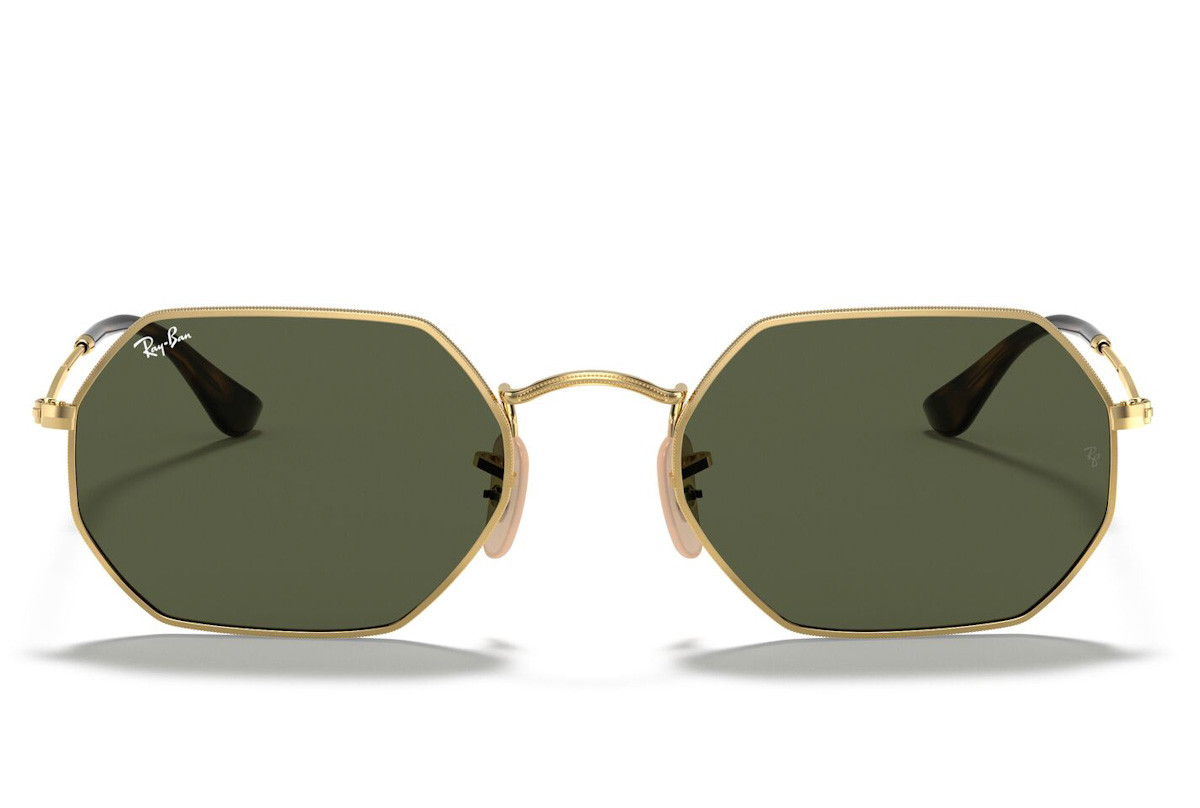 Μεταλλικός unisex χρυσός γυαλιστερός σκελετός σε πολυγωνικό σχήμα και μοντέρνο στιλ με σκούρους πράσινους G-15 UV400 κρυστάλλινους φακούς.