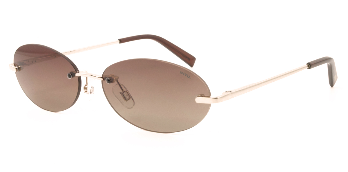 Μεταλλικός griff unisex χρυσός γυαλιστερός και ελαφρύς σκελετός σε οβάλ σχήμα και ρετρό στιλ με δίχρωμους καφέ πολωτικούς φακούς.